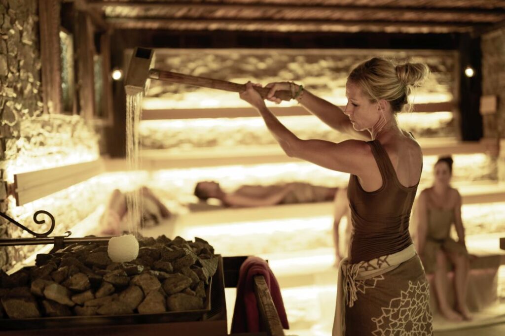 Das tolle Ambiente vermittelt das Gefühl einer eleganten Hotelanlage. Die Saunawelt ist eine Oase der Ruhe. Ob persisches Edelsteinbad, Haus der Meditation oder indisch-arabischer Bereich, die Entspannung ist hier garantiert. Auch der Badebereich ist ein Traum und wenn man sich etwas Besonderes gönnen will, kann man eine Massage zubuchen. Zudem werden eine Auswahl wohltuender Peelings angeboten, die jederzeit zusätzlich reserviert werden können.